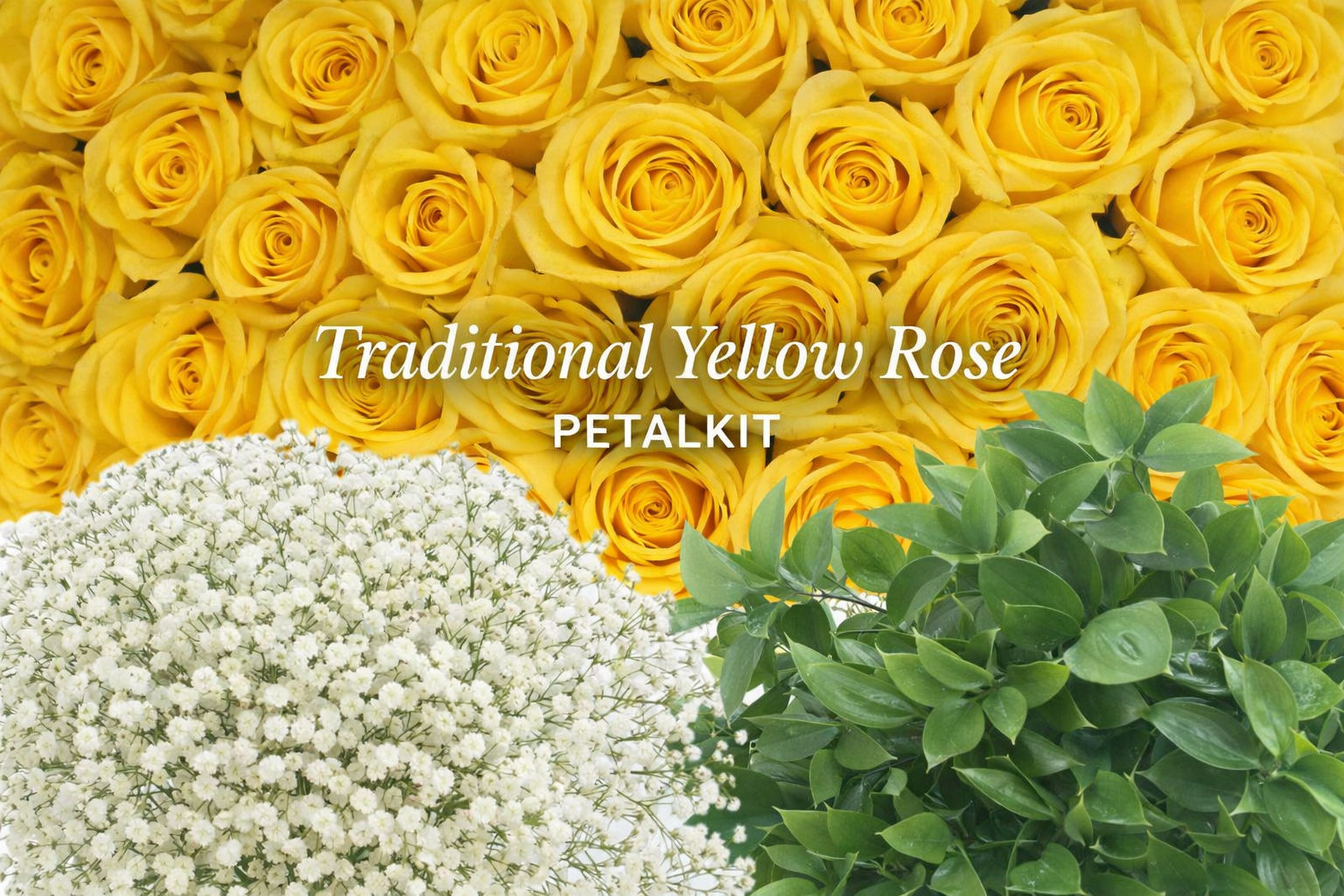 Bright, cheerful, and effortlessly classic, the Traditional Yellow Rose PetalKit is a beautiful choice for events that call for warmth and optimism. Vibrant yellow roses take center stage, bringing a fresh, sunny feel to arrangements, while airy Baby’s Breath adds softness and dimension. Lush Israeli Ruscus finishes the look with rich greenery and structure.